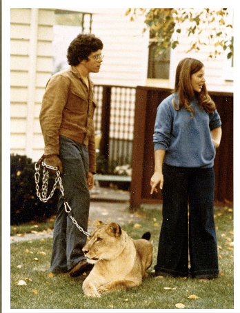 Zaki was one of three African lions Jim’s family raised from cubs. His father built the Born Free Motorcoach, and the lions became company mascots during a time when having exotic pets was legal for private citizens. Jim and his sister spent a year traveling across the country, showcasing Zaki at RV shows and Born Free dealers, making every day feel like a safari adventure.